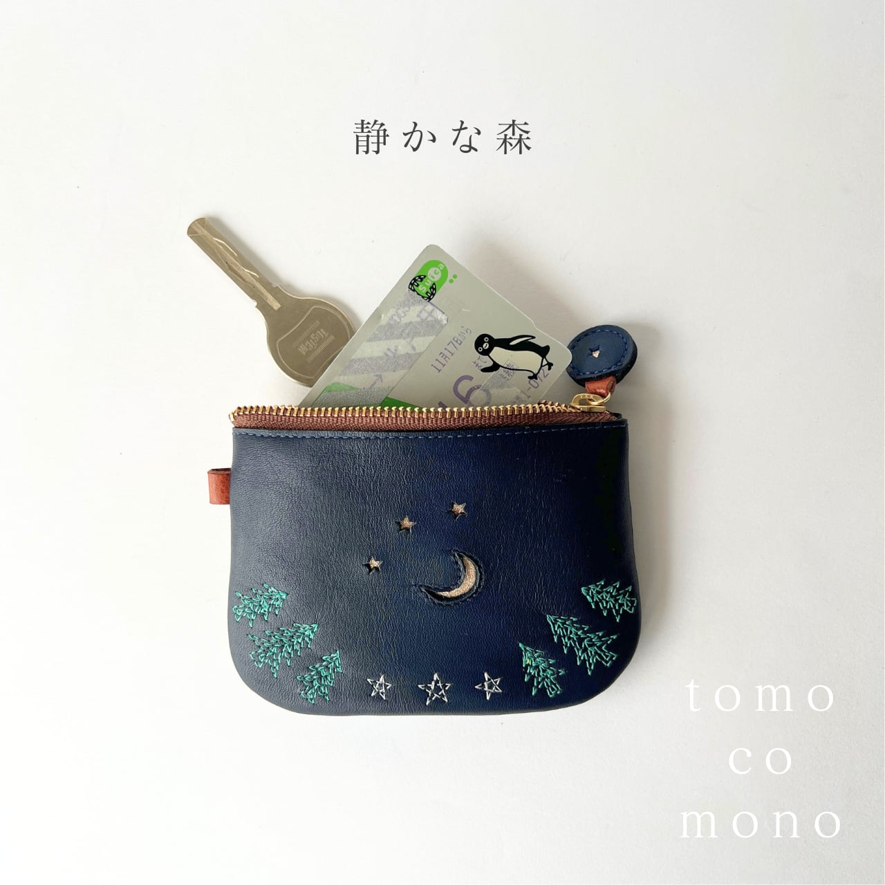 初登場! 刺繍革財布『森の夜』NAVY(牛革)パスケース