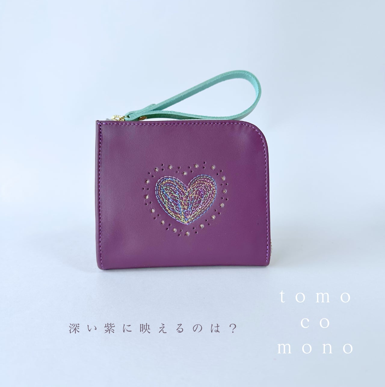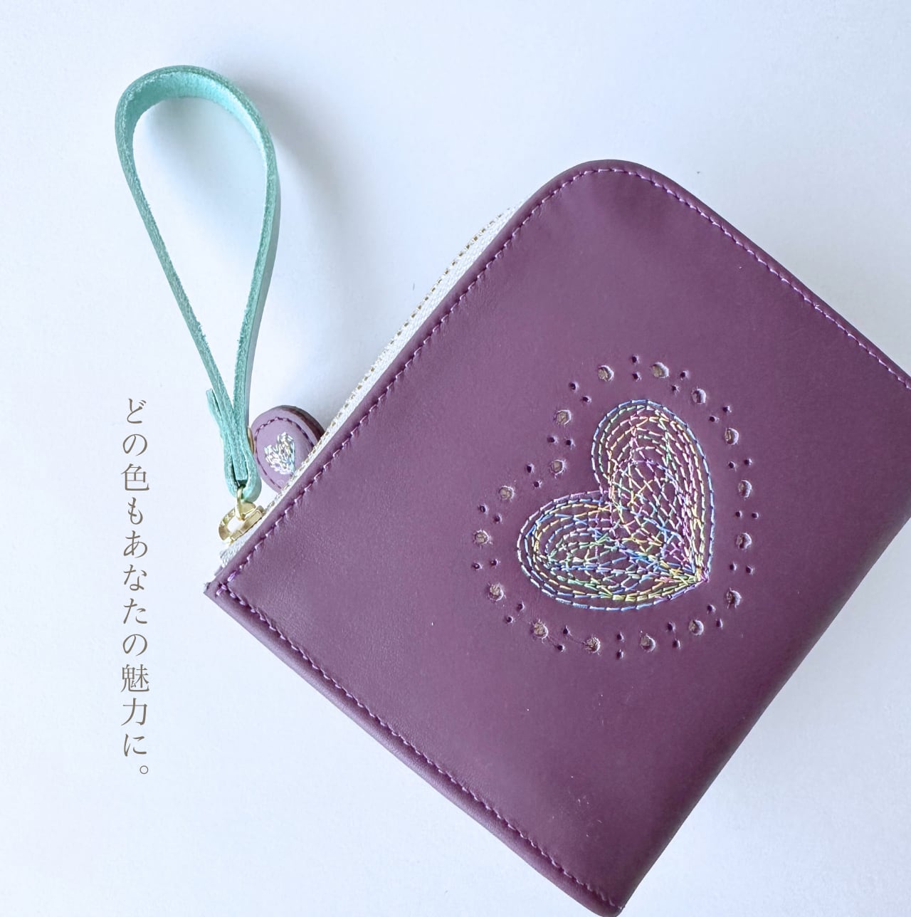 ECCOレザー × 刺繍革財布『HEART』PLUM/パープル(牛革)二つ折り
