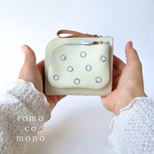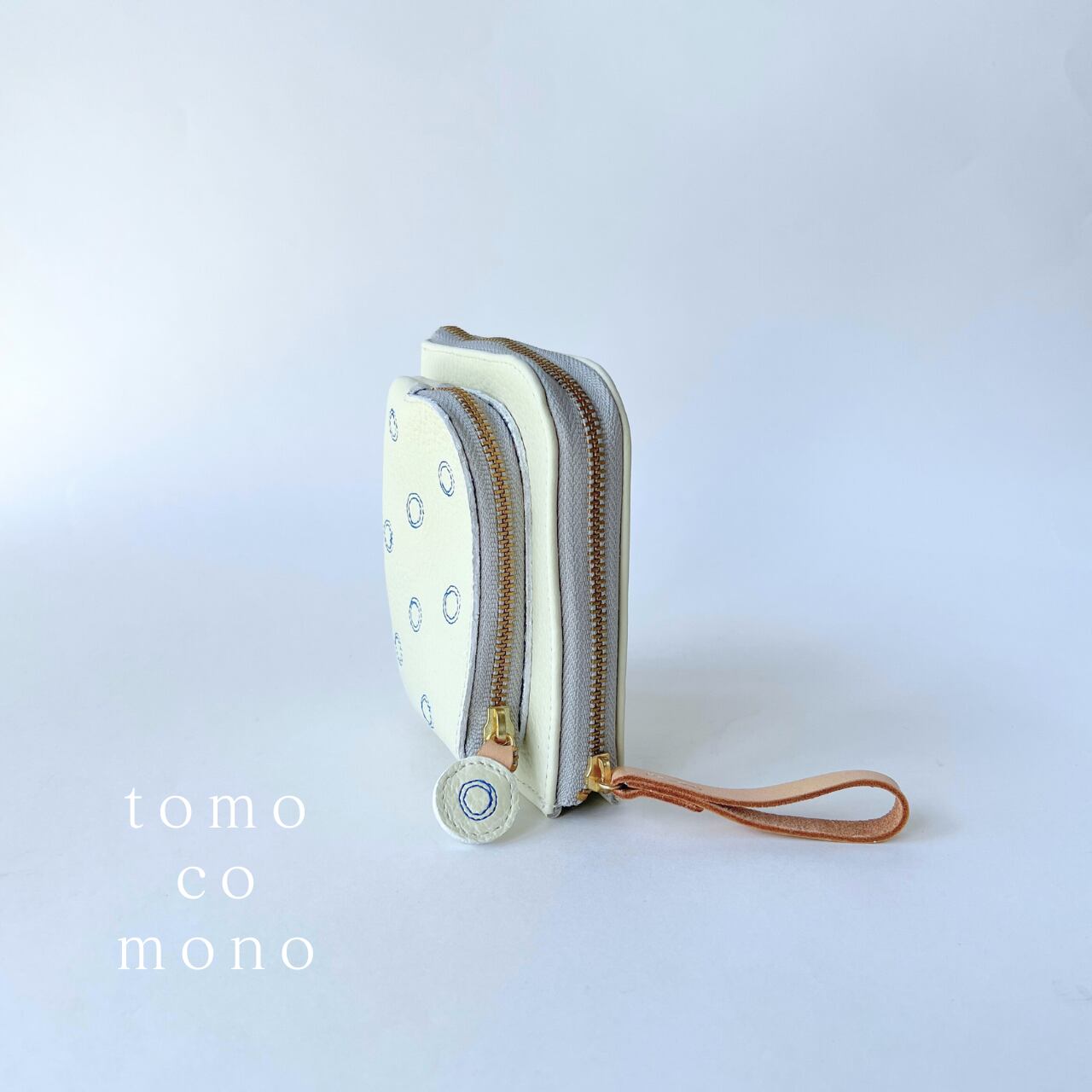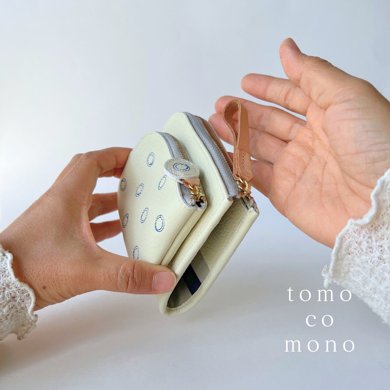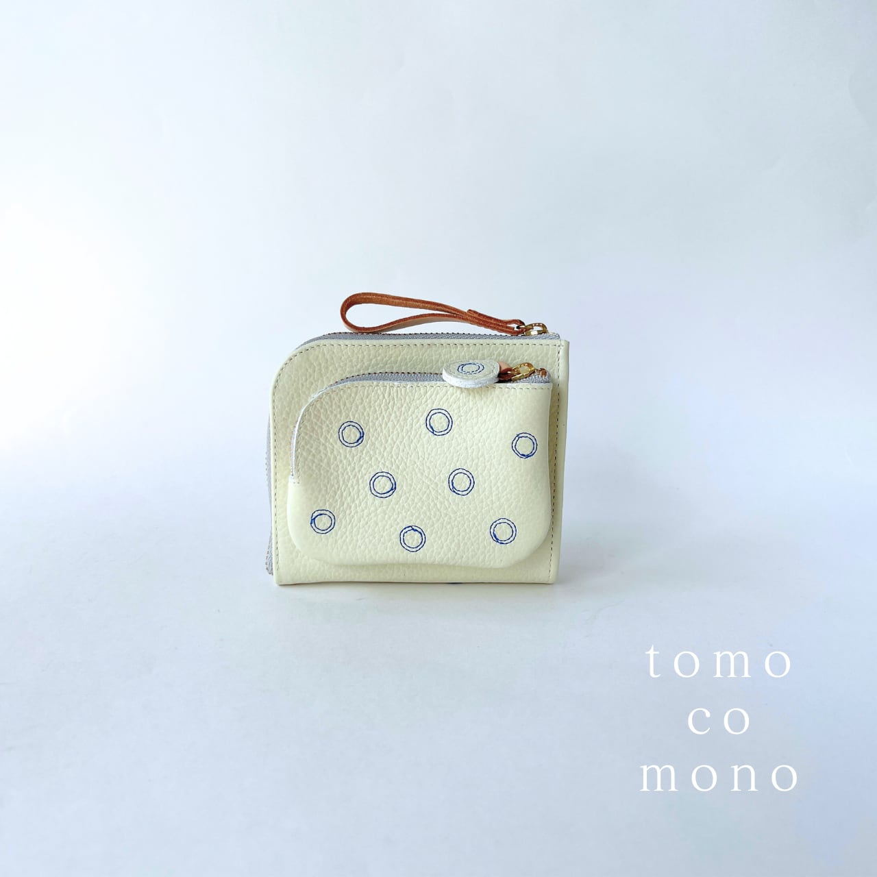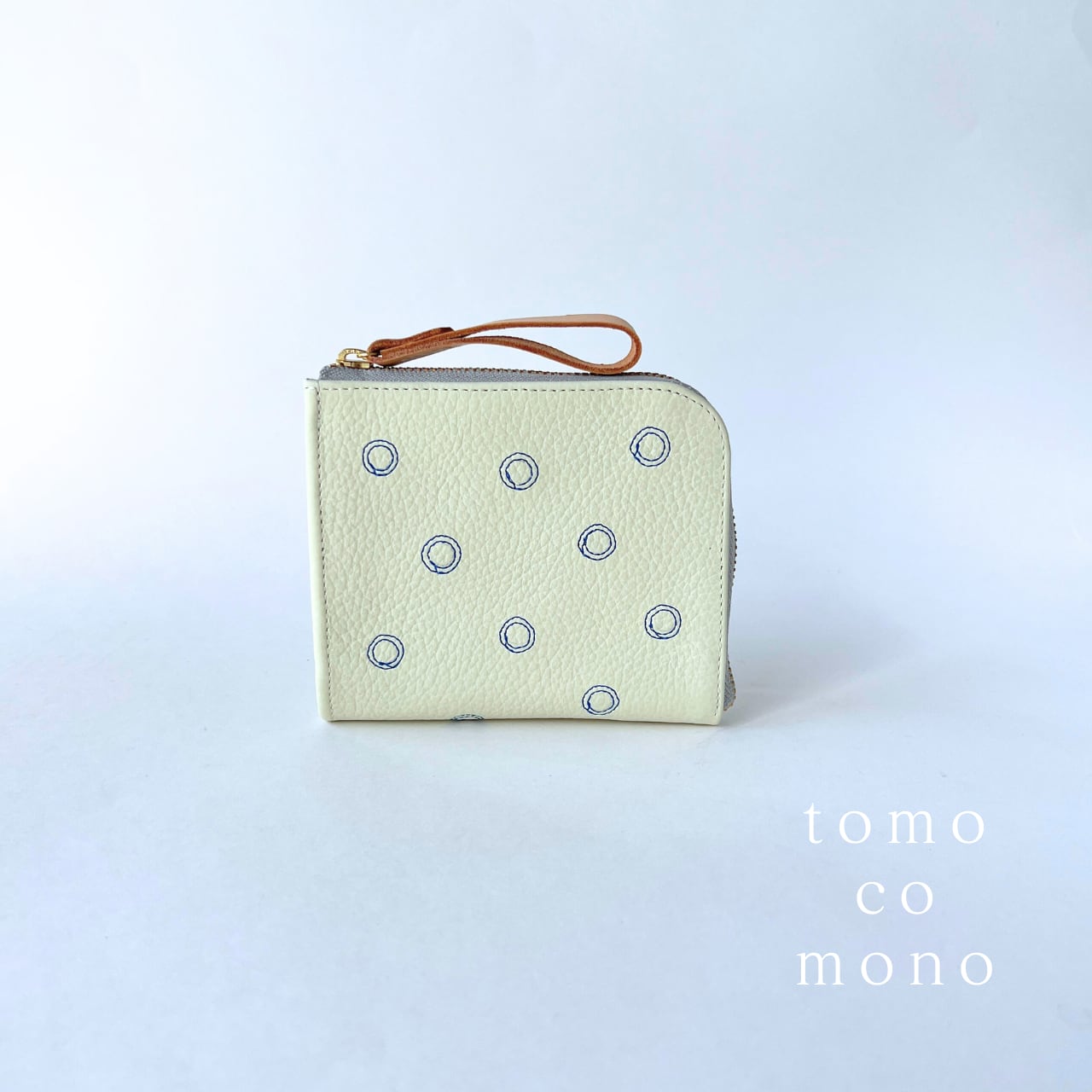 刺繍革財布『shuwa-shuwa』ホワイトクリーム×BLUE(牛革)"二つ折り財布"