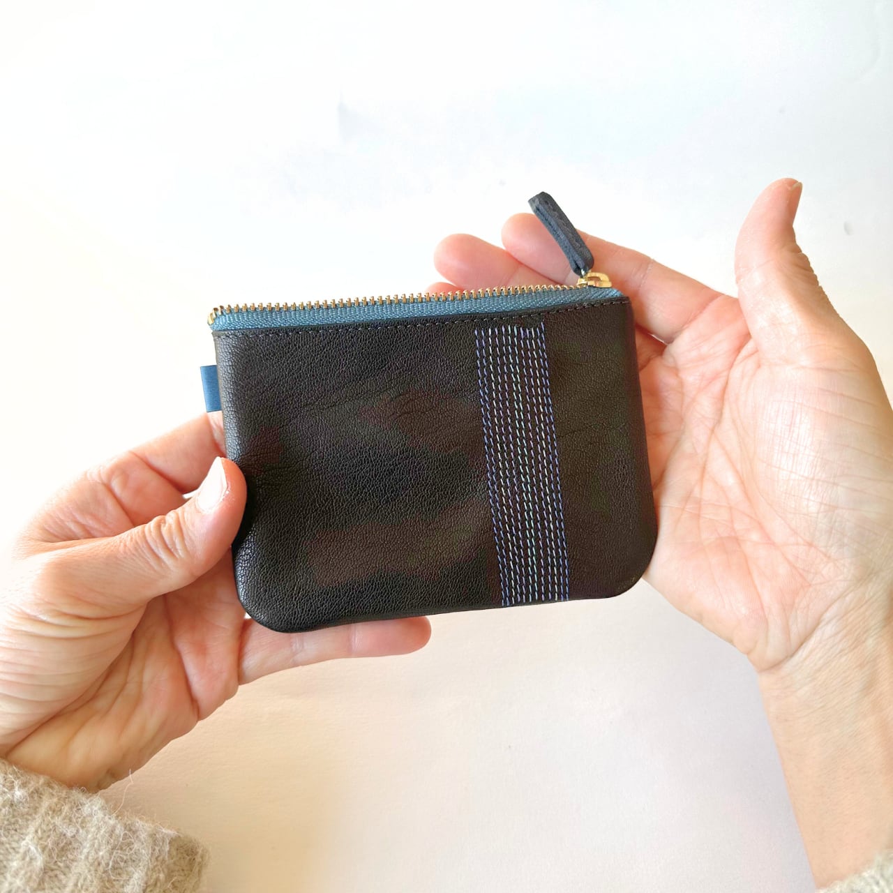 刺繍”パスケース”『グラデーションステッチ』黒orチャコールグレイ(ヤギ革)※3種あります。
